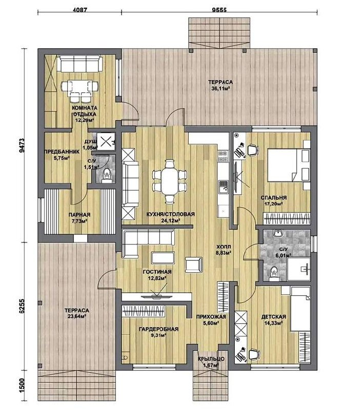 Современный одноэтажный дом с террасой — это комфортное и функциональное решение для постоянного проживания за городом. Проект отлично подходит для строительства в Санкт-Петербурге и Ленинградской области и может быть реализован как каркасный дом или дом из газобетона, в зависимости от пожеланий заказчика. Архитектура дома выполнена в современном стиле, сочетающем лаконичные формы, большие окна и удобные зоны для отдыха. Такой дом идеально подходит для семьи, ценящей комфорт, пространство и близость к природе. Проект востребован среди тех, кто планирует строительство дома под ключ, ищет строительство дома в Ленинградской области, рассматривает строительство дома в Санкт-Петербурге, интересуется каркасным домом под ключ, хочет построить дом из газобетона под ключ, выбирает проект одноэтажного дома, планирует строительство коттеджа, ищет современный проект дома, рассматривает дом для постоянного проживания, а также хочет построить загородный дом с продуманной архитектурой и стильным внешним видом.